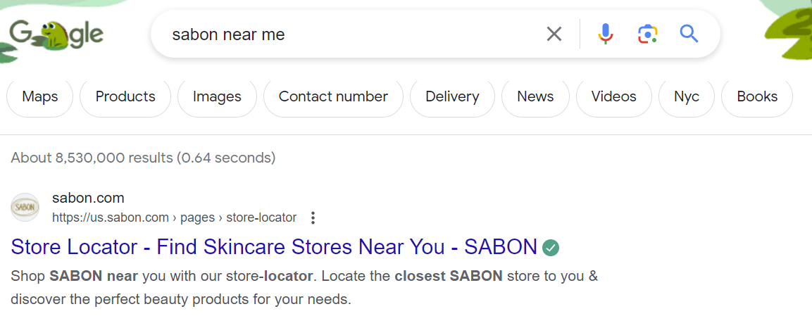 Sabon’s luxury marketing team have this nailed, with their brand store locator page sitting at the top of Google search results for the query ‘sabon near me’.
